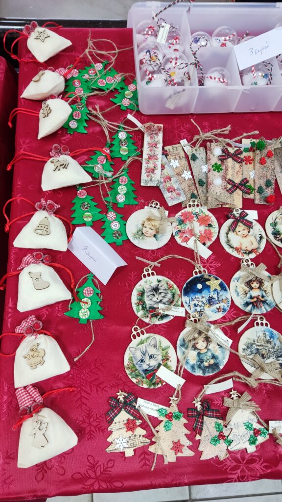 Την Κυριακή 8 Δεκεμβρίου το σχολείο μας έσφυζε από ζωή! Με τη συνδρομή της Διευθύντριας, διδασκόντων και 35 μαθητών του σχολείου μας φτιάξαμε εντυπωσιακά χριστουγεννιάτικα παιχνίδια με άφθονη αγάπη, φαντασία και μεράκι!!! Στην προσπάθειά μας αυτή ήταν ουσιαστική η υποστήριξη μητέρων που είτε ανήκουν στον Σύλλογο Γονέων και Κηδεμόνων είτε όχι. Συγκινητική είναι επίσης η πολύτιμη βοήθεια που προσφέρει κάθε χρόνο μητέρα μαθητή μας που έχει πλέον αποφοιτήσει. Σας καλούμε να αγοράσετε τα χριστουγεννιάτικα στολίδια μας, αυτά που αποδεικνύουν με τον πιο όμορφο τρόπο ότι το σχολείο είναι ένας ζωντανός οργανισμός, που καλλιεργεί όλες τις δεξιότητες των μαθητών και ενισχύει τη δημιουργική συνεργασία όλων των εμπλεκόμενων στη σχολική κοινότητα μερών. Σας καλούμε να διακοσμήσετε τη χριστουγεννιάτικη γωνιά σας με τα στολίδια των δικών μας παιδιών!!!